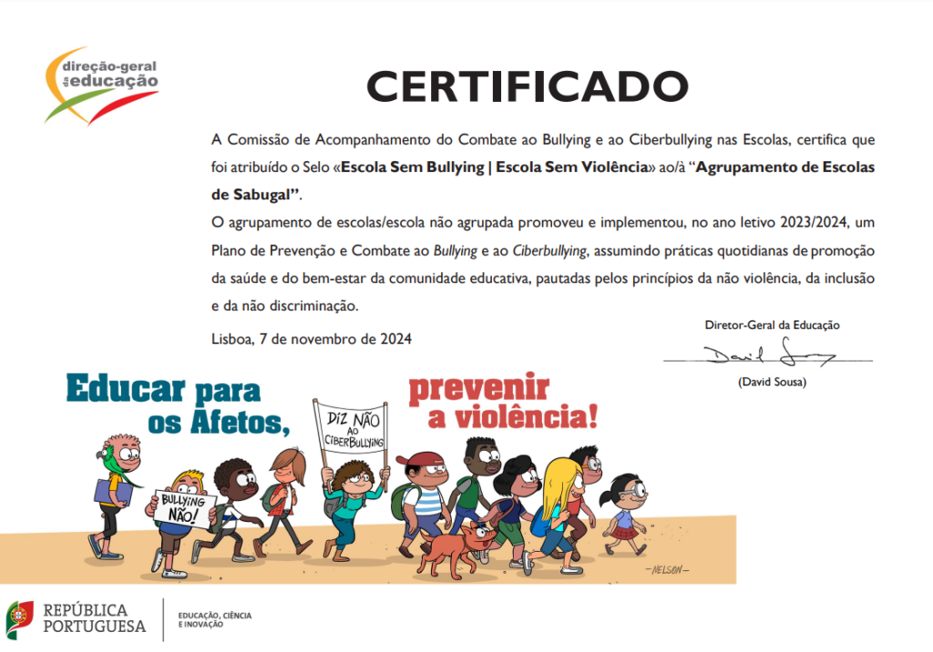 O Agrupamento de Escolas do Sabugal foi uma das escolas distinguidas pela Direção-Geral da Educação com o Selo ‘Escola Sem Bullying | Escola Sem Violência’ 2023/2024.