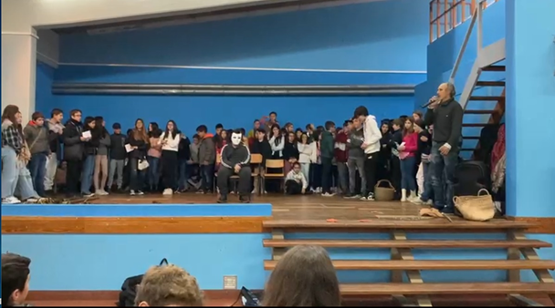 Escola Sede do Agrupamento de Escolas de Pinhel, com a presença de nove alunos alocados ao Clube, acompanhados pela Coordenadora do mesmo, a professora Ana Ferreira.