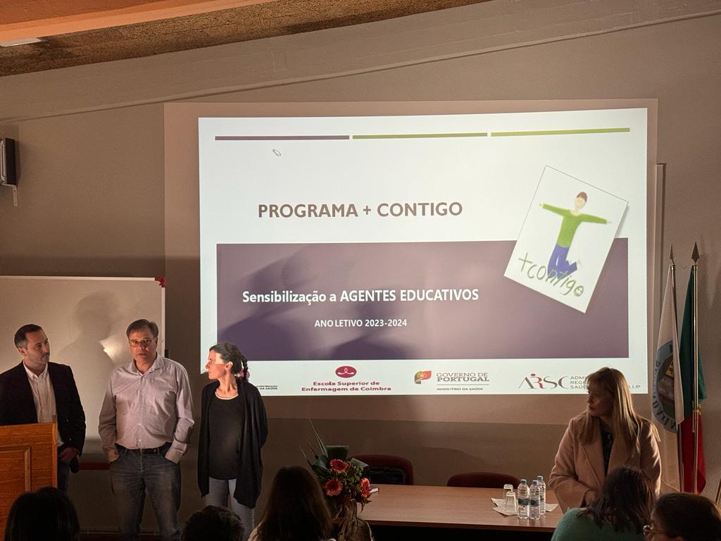 A 24 de janeiro de 2024 teve início o Programa “Mais Contigo” com duas sessões de formação, uma dirigida aos agentes educativos (professores e pessoal não docente) e outra destinada aos Pais/Encarregados de Educação, sendo formador o Enfermeiro Jorge Façanha, membro da equipa coordenadora a nível nacional deste programa educativo.