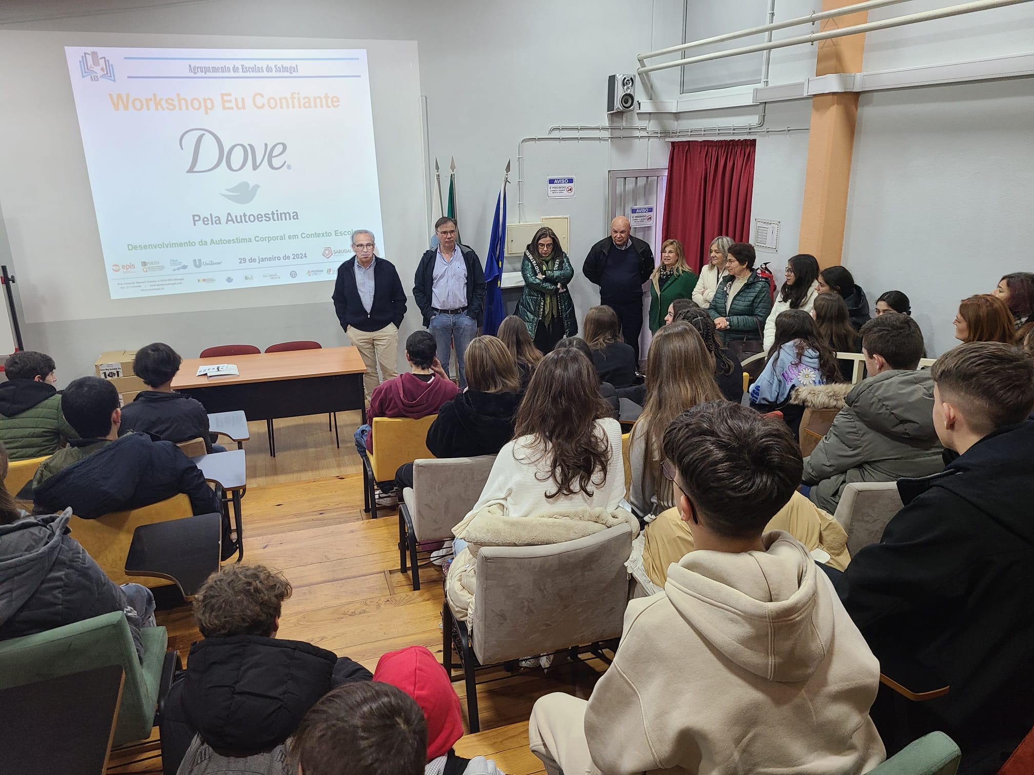 No âmbito do Curso de Formação “Desenvolvimento da Autoestima Corporal em Contexto Escolar”, ministrado pela Faculdade de Psicologia e de Ciências da Educação da Universidade do Porto, foram dinamizados, ao longo do primeiro período, vários Workshops com os alunos das turmas do 7.º ano, de acordo com a visão e missão do «Projeto DOVE Eu Confiante», tendo no dia 29 de janeiro decorrido a Sessão de encerramento, que contou com a presença da Sra. Vice-presidente da Câmara Municipal, Dra. Sílvia Nabais, da Sra. Presidente da CPCJ, Dra. Ester Saldanha, do Sr. Diretor do Agrupamento, Dr. João Vila Flor, para além dos professores dinamizadores dos Workshops, António Carlos Santos e Cláudia Marques, entre outros professores das turmas, com entrega de Certificados e prémios DOVE aos alunos participantes.