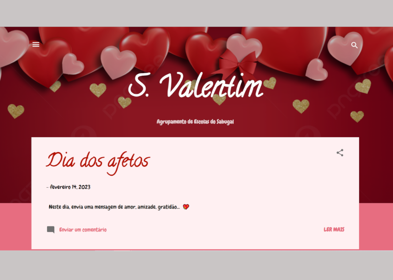 AtividadesDestaques Dia dos afetos 14 de Fevereiro, 2023 f749 14 de fevereiro Neste dia, envia (aqui) uma mensagem de amor, amizade, gratidão… ?