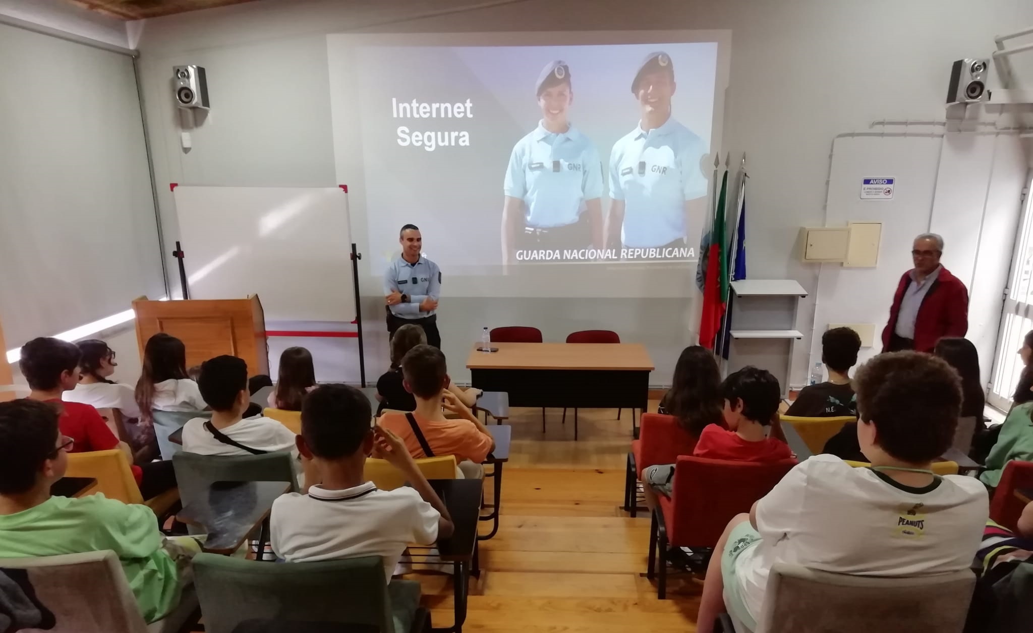 Hoje, os alunos do 2º ciclo assistiram à ação de sensibilização “Internet Segura”, dinamizada com a colaboração da GNR e da CPCJ.