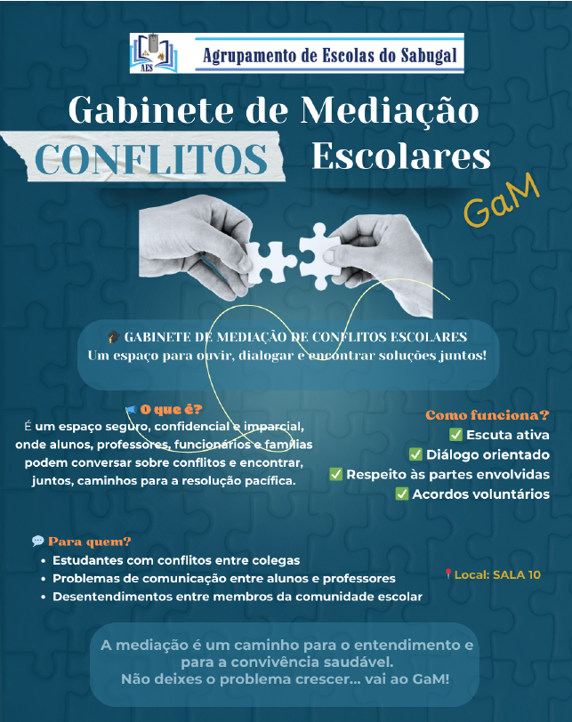 O Gabinete de Mediação de Conflitos está ao dispor da comunidade escolar.