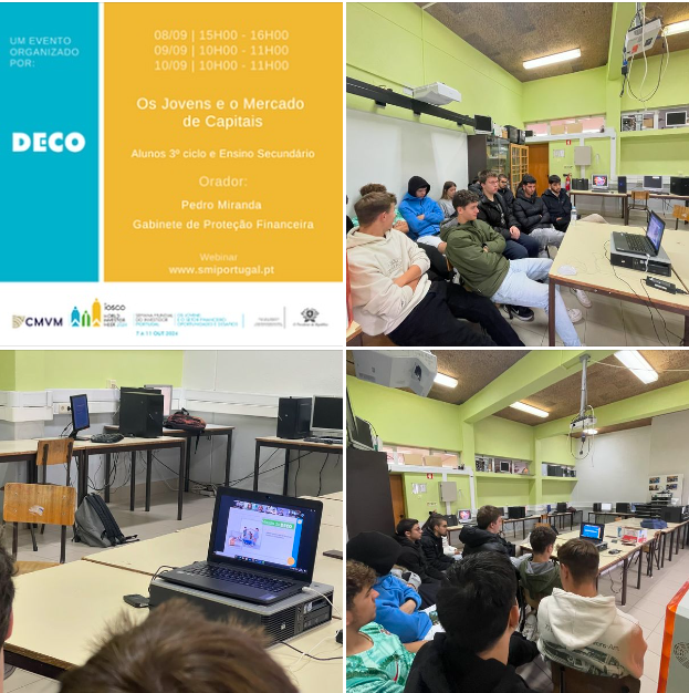 No âmbito da literacia financeira, a turma do 11° ano do Ensino Profissional, TEAC, participou, no dia 09 de outubro, na atividade “ Os jovens e o mercado de capitais”, proposta pela Deco e que decorreu online. Esta revelou-se interessante, pois os alunos puderam interagir, respondendo a questões.